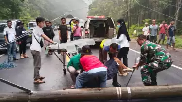 Blora, tvOnenews.com - Seorang pengendara sepeda motor tertimpa tiang listrik yang roboh di Jalan Raya Blora-Cepu, tepatnya ikut wilayah Desa Sambong Kecamatan Sambong Kabupaten Blora, Jawa Tengah, pada Jumat (5/4/2024) sekitar pukul 04.45 WIB.