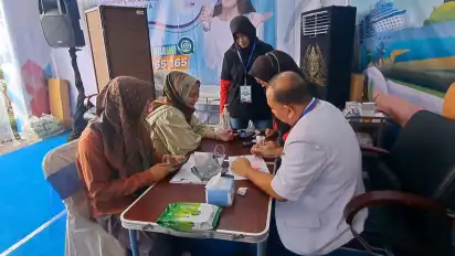" Tadi saya periksa tekanan darah dan cek darah untuk gula darah dan kolesterol. Selain itu ada juga alat pijit buat badan pegel pegel juga bisa," imbuhnya.