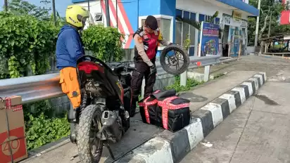 Beruntung, saat kejadian ada Polisi yang sedang bertugas di Pos Terpadu Exit tol Gandulan Pemalang sigap menolong dan membawa sepeda motornya ke Pos Gandulan yang berjarak 150 meter dari TKP.