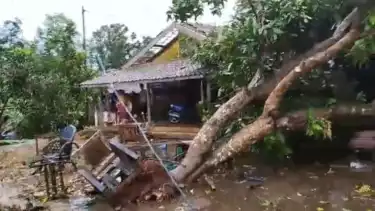 Bahkan dari dampak hujan lebat dan angin kencang tersebut membuat beberapa atap rumah warga dan pohon di sana tumbang.