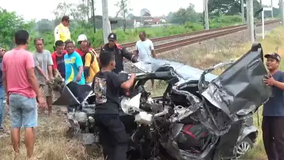 Sesampainya di lokasi, melintas kereta api dari arah Utara ke Selatan. Mobil kemudian tertabrak kereta api hingga ringsek. Bahkan, mobil sempat terseret hingga 20 meter.