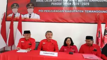 "Menjelang pilkada, DPC PDIP Kabupaten Temanggung pada 10-26 Mei 2024 mengadakan pendaftaran dan penjaringan bakal calon bupati dan wakil bupati Temanggung," kata Wakil Ketua DPC PDIP Kabupaten Temanggung Susilo Wardoyo di Temanggung, Jumat (10/5/2024).