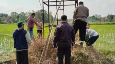 "Pagi ini telah terjadi peristiwa meninggal dunia karena tersengat arus listrik dari pompa air untuk mengaliri sawah. Korbannya Bapak Kades Desa Gombang, Suwarjan," ungkap AKP Budi.