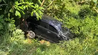 Diduga kecelakaan tunggal terjadi akibat pengemudi tidak mengetahui medan, jika tepi jalan dilokasi kejadian mengalami longsor. Sehingga mobil yang dikemudikan Untung Wahyudi (35) terperosok ke jurang sedalam 10 meter.