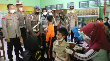 Polres Kebumen menyalurkan 20 ribu dosis vaksin, dari Dari total 121 ribu dosis vaksin diberikan pada anak usia 6-12 tahun di Kabupaten Kebumen. Secara bertahap digelar di 35 Sekolah Dasar di wilayah Kabupaten Kebumen.