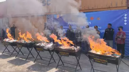 "Hari ini kita lakukan pemusnahan penindakan hasil sinergitas di lapangan, sebanyak 25 juta batang rokok tanpa dilengkapi pita cukai. Kerugian negara hampir sekitaran Rp 36 miliar rupiah. Selain rokok, kita juga pemusnahan minuman mengandung alkohol, semuanya itu tanpa dilengkapi pita cukai," ujarnya usai pemusnahan, Selasa (8/7/2024).