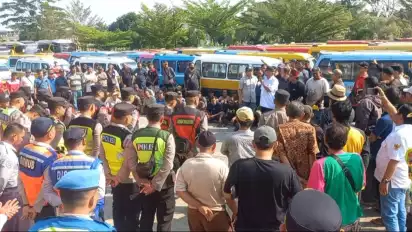 Keributan sempat terjadi saat sopir angkot memaksa seluruh penumpang turun dan meminta sopir angkot yang masih beroperasi ikut demonstrasi di Terminal Slawi, Kabupaten Tegal.