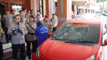 Kudus, tvOnenews.com - Polres Kudus, Jawa Tengah, menggelar keterangan pers terkait kasus anggota polisi lalu lintas Polres Kudus yang terbawa diatas kap mobil seorang pengendara saat melakukan pengaturan lalu lintas pada Jumat (2/8/2024) lalu.