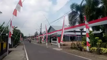 Sepanjang mata memandang, ada bentangan merah putih di sepanjang jalan dusun. Selain aneka umbul-umbul. Itulah suasana di Dusun 1, Desa Kedunggede, Kecamatan Banyumas, Kabupaten Banyumas.