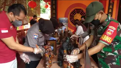 Toleransi, Lintas Agama dan TNI Polri Bersihkan Klenteng Jelang Imlek