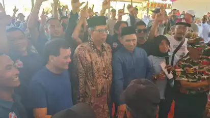 Brebes, tvOnenews.com - Pasangan calon Gubernur dan Wakil Gubernur Jawa Tengah, Ahmad Luthfi dan Taj Yasin, menemui ribuan petani bawang merah, di sebuah gudang bawang merah, yang ada di Desa Luwungragi Kecamatan Bulakamba, Kabupaten Brebes, Rabu (18/09/2024) siang.
