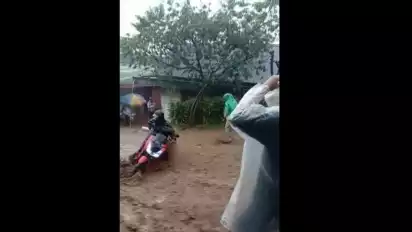 Banjarnegara, Jawa Tengah - Sebuah video banjir bandang viral di media sosial. Banjir tersebut pun membuat sebuah sepeda motor terseret arus dan beberapa kendaraan yang melintas pun tampak kesulitan melewati arus banjir.