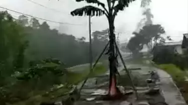 Tangkapan layar, warga tanam pohon pisang di jalur evakuasi Gunung Slamet, Bambangan, Purbalingga yang rusak parah.