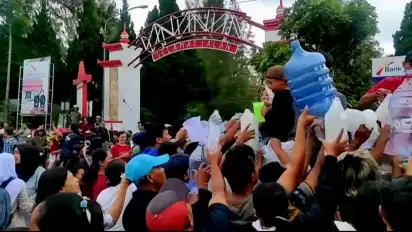 Warga yang mendapati adanya pembagian susu sapi gratis pada Minggu (10/11/2024) cukup gembira. Dengan membawa aneka wadah seperti botol dan jerigen, warga berkerumun untuk mendapatkan susu gratis.