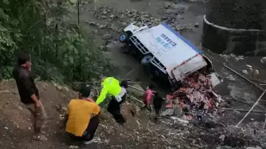 "Kami belum memastikan penyebab pasti kecelakaan. Hingga malam ini juga kami belum melakukan evakuasi kendaraan truk. Kami masih menunggu truk derek untuk evakuasi," pungkasnya. (tho/buz)