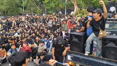 Semarang, tvOnenews.com - Ratusan pengunjuk rasa melakukan aksi demonstrasi di depan gerbang Markas Polda Jawa Tengah di Jalan Pahlawan Semarang, Kamis (28/11/24) sore WIB.