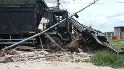 Akibat Rem Blong, Truk Tronton Tabrak Warung Makan di Pati