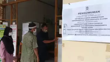 Klaten, Jawa Tengah - Aktivitas pelayanan di Kantor Dinas Kependudukan dan Pencatatan Sipil (Disdukcapil) Kabupaten Klaten, Jawa Tengah, dihentikan sementara setelah sejumlah pegawai terkonfirmasi positif Covid-19.