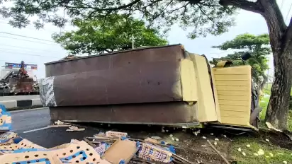 "Saya berhasil lolos tapi nabrak median jalan. Terus truk boks saya oleng, akhirnya nabrak pohon yang sebelah kanan," jelasnya.