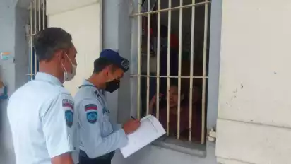 Salatiga, Jawa Tengah - Petugas Rutan Kelas IIB Salatiga, melakukan razia rutin terhadap blok hunian (sel) warga binaan Rutan Salatiga. Selain menggelar razia, warga binaan juga diwajibkan mengikuti apel pagi yang dilaksanakan Selasa (15/2/2022).