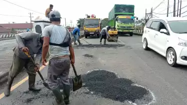 Pekalongan, Jawa Tengah - Satker Pelaksana Jalan Nasional Wilayah I Jawa Tengah akhirnya melakukan penambalan lubang jalan di jalur pantura ruas Pemalang-Batang. Banyak lubang di jalur pantura yang menyebabkan kecelakaan pengendara sehingga menjadi sorotan masyarakat.