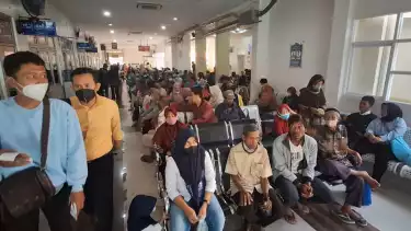 Dari pantauan di RSUD Brebes, nampak pasien rawat jalan yang akan memeriksakan kesehatannya membludak di lorong ruang Poliklinik, sambil menunggu antrean panggilan.