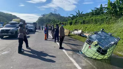 " Tidak ada korban jiwa dalam peristiwa ini, dan kami juga berkonsentrasi untuk melakukan proses pembersihan cairan kimia yang tumpah," imbuh Kapolres.