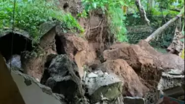 Purbalingga, Jawa Tengah - Tak ada angin tak ada hujan, beberapa batu berukuran besar longsor dan menimpa rumah warga di Kabupaten Purbalingga, Jawa Tengah. Meski tidak memakan korban jiwa, kondisi rumah rusak parah.
