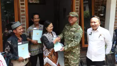 Semarang, tvOnenews.com - Menteri Agraria dan Tata Ruang/Kepala Badan Pertanahan Nasional (ATR/BPN), Nusron Wahid, menyerahkan 965 sertipikat hasil Konsolidasi Tanah di Kelurahan Susukan, Kabupaten Semarang, Jawa Tengah, Kamis (27/02/2025).