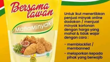 Dalam flyer dengan grafis kemasan pouch minyak goreng, tertulis ajakan menertibkan penjual minyak goreng online dadakan/kartonan dengan harga yang mahal dan tidak wajar. Kemudian juga membanned, memblacklist, hingga melaporkan ke pihak berwajib, praktik curang penjualan minyak goreng di dunia maya.