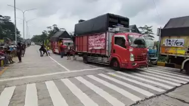 Boyolali, Jawa Tengah - Ratusan sopir truk di Boyolali, Jawa Tengah kembali menggelar aksi turun ke jalan untuk menolak aturan mengenai pembatasan dan pelarangan truk over dimensi dan over loading (ODOL), Selasa (11/3/2022).