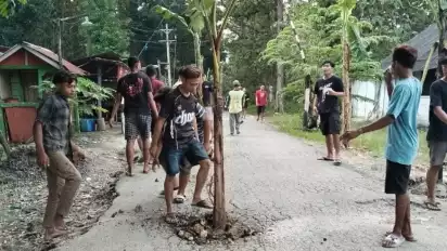 Ratusan Warga Blora Tanam Pohon Pisang di Jalan Rusak, Protes Perbaikan Tak Kunjung Datang