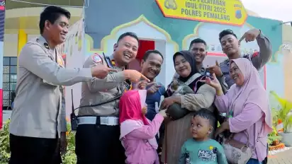 Pemalang, tvOnenews.com - Sebuah momen haru terjadi di Pos Pelayanan Operasi Ketupat Candi 2025 Rest Area 319B Kabupaten Pemalang, Jawa Tengah, menjelang berakhirnya pengamanan mudik lebaran, Selasa (8/4/2025) siang.