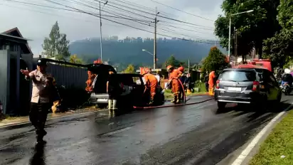 " Sebelum api menjalar ke bagian badan mobil, pengemudi dan 2 penumpang berhasil menyelamatkan diri." Imbuh Kapolsek.