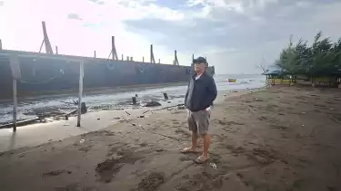 "Akibat gelombang tinggi yang terjadi, membuat kapal tongkang semakin menepi hingga kandas dan berjarak hanya sekitar tiga meter bahkan hampir menabrak warung," kata Ibnu kepada awak media, Selasa (01/07/2025) siang.