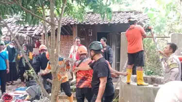 Proses evakuasi pria paruh baya yang ditemukan meninggal dunia di dalam sumur.
