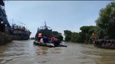 Pati, Jawa Tengah - Jelang Lebaran, Sungai Silugonggo yang berada di pinggir Pelabuhan Juwana, Kabupaten Pati, Jawa Tengah mulai dipenuhi ratusan kapal nelayan yang bersandar. Kapal-kapal ikan berukuran puluhan gross ton tersebut disandarkan dan ditinggal nahkoda serta anak buah kapal (ABK) untuk merayakan Lebaran. Banyaknya kapal yang bersandar membuat petugas Satpolair Polres Pati terus melakukan patrol.