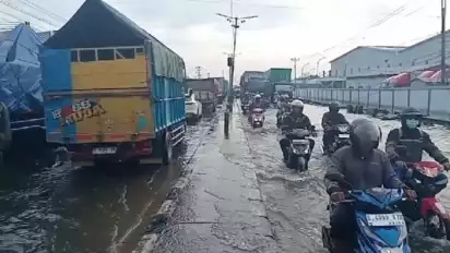 Ketinggian air mencapai 40 cm memaksa kendaraan yang melintas berjalan pelan dan merayap. Sejumlah kendaraan roda dua terjebak dalam genangan cukup dalam, sehingga mengakibatkan mesin kendaraan mati.