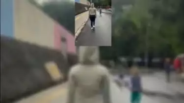 Video berdurasi 30 detik yang kini viral, memperlihatkan perempuan mengenakan pakaian olah raga tengah joging. Rekannya merekam dengan kamera ponsel dari belakang.