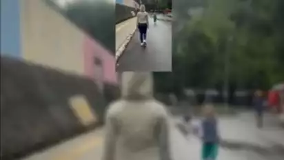 Beberapa kali, si perempuan dan orang yang merekam memperingatkan si anak untuk menghentikan aksinya. Tapi dalam video juga terdengar tawa lepas dari sisi perekam video.