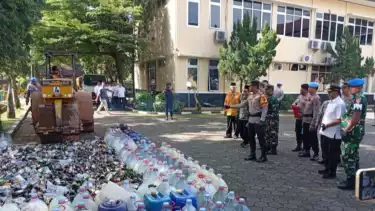 Purwokerto, tvOnenews.com - Kepolisian Resor Kota (Polresta) Banyumas, Jawa Tengah, memusnahkan minuman beralkohol hasil operasi penyakit masyarakat (Pekat).