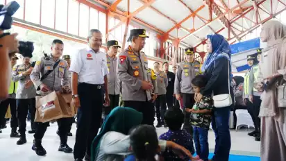 Kapolri juga menyempatkan diri menyapa para penumpang di ruang tunggu keberangkatan serta membagikan goodie bag sebagai bentuk perhatian dan dukungan kepada masyarakat yang akan melakukan perjalanan. Selain itu, Kapolri menyerahkan paket bantuan sosial secara simbolis kepada perwakilan petugas lintas sektor, meliputi unsur TNI, Polri, Dinas Perhubungan, tenaga kesehatan KAI, dan Polsuska.