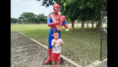 Selain patung Spiderman menggendong anak, terdapat pula patung Superman berjubah kain sarung yang tengah duduk sambil bermain layangan. Patung Superman ini juga menyedot daya tarik warga untuk sekadar berswafoto.