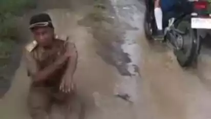 Sragen, tvOnenews.com - Viral sebuah video, Kepala Desa Ngepringan, Kecamatan Jenar, Kabupaten Sragen, Jawa Tengah, Sunarso melakukan aksi mandi di sebuah kubangan jalan rusak yang penuh dengan air lumpur.