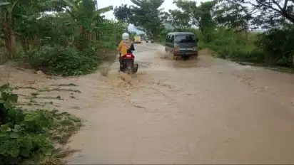 “Sejumlah pengendara sempat terperosok jatuh, akibat tidak hati-hati saat melintas di jalan beton yang licin. Kami berharap pengendara waspada saat melintas di genangan banjir,” kata Nursalim. (San/Ard)