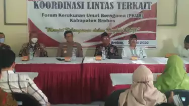 Hal itu terungkap saat berlangsungnya kegiatan rapat koordinasi lintas sektor yang dilaksanakan oleh Forum Kerukunan Antar Umat Beragama (FKUB) Kabupaten Brebes, dengan tema "Merajut Keberagaman Dalam Bingkai NKRI", di aula Badan Kesatuan Kebangsaan Politik (Kesbangpol) Daerah setempat, Selasa 31 Mei 2022, sore.