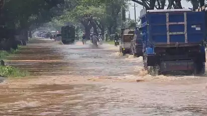 "Jalan pantura banjir sepanjang satu kilometer ini. Ketinggian sekitar 30 sentimeter. Saya mau ke Desa Garas tidak berani lewat, takut mogok motor saya," ujar Cakra Budiman, salah seorang pengendara motor, Kamis (14/7/2022).