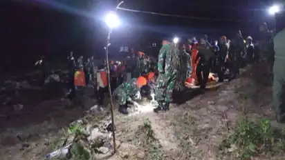 Karena lokasi jatuhnya pesawat berada di kawasan hutan, petugas harus berjalan kaki ke arah hutan sejauh 5 kilometer dalam kondisi gelap.