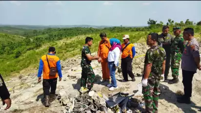 Wakil Bupati Tri Yuli Setyowati didampingi sejumlah petugas BPBD, TNI yang masih dilapangan melihat lokasi jatuhnya pesawat tempur TNI AU Golden Eagle T50i.