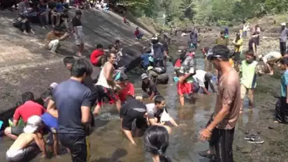 Ratusan Warga Turun ke Sungai untuk Tangkap Ikan di Festival Kalisat 2022